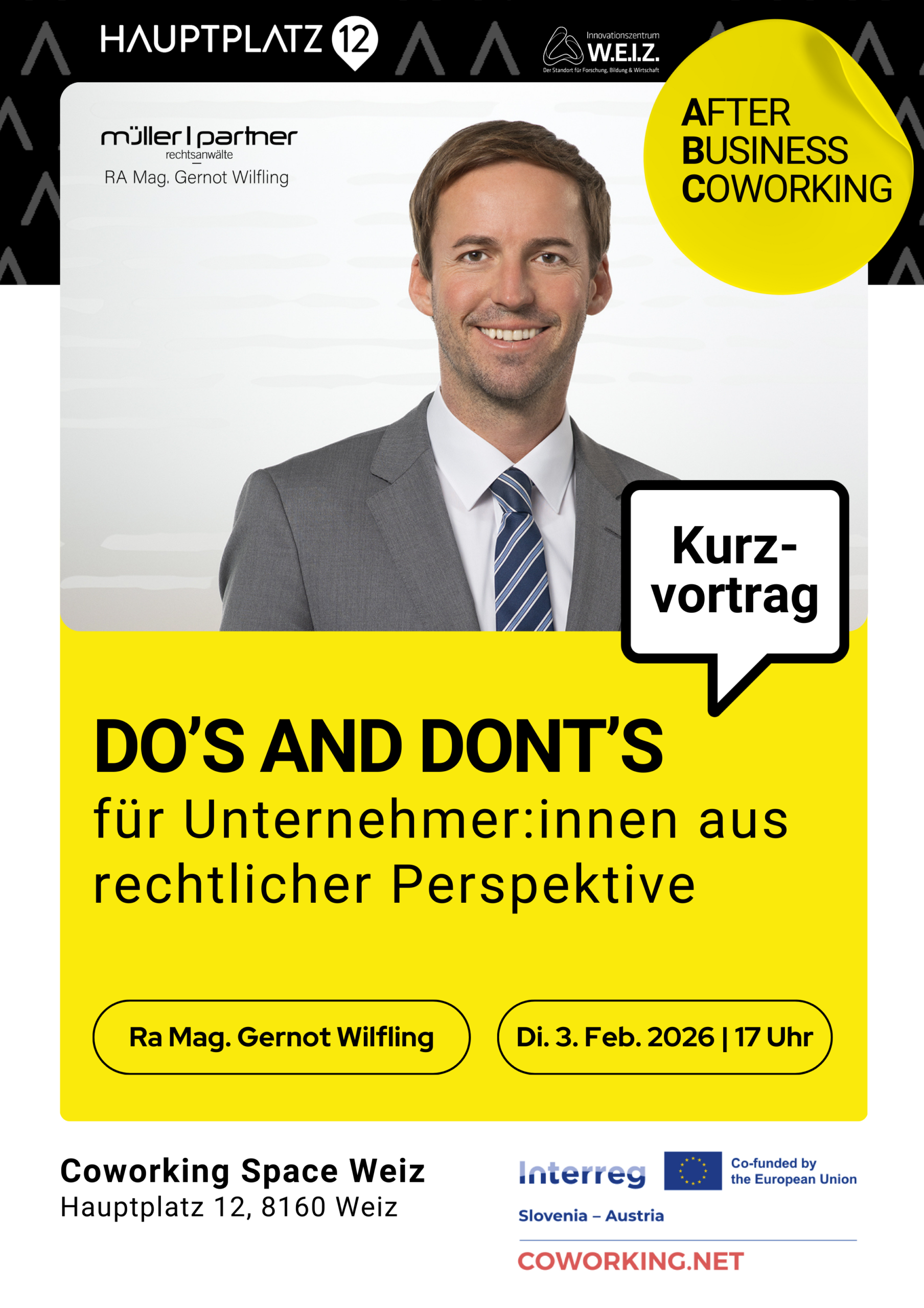 Beim After Business Coworking war Gernot Wilfling, Unternehmensanwalt und Supportpartner bei Müller+Partner Rechtsanwälte, zu Gast. In seinem praxisnahen Impulsvortrag gab er wertvolle Einblicke in…